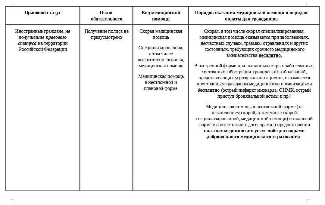 • на платной основе или по полису ДМС при отсутствии полиса ОМС (для иностранных граждан, не получивших правового статуса на территории РФ).
