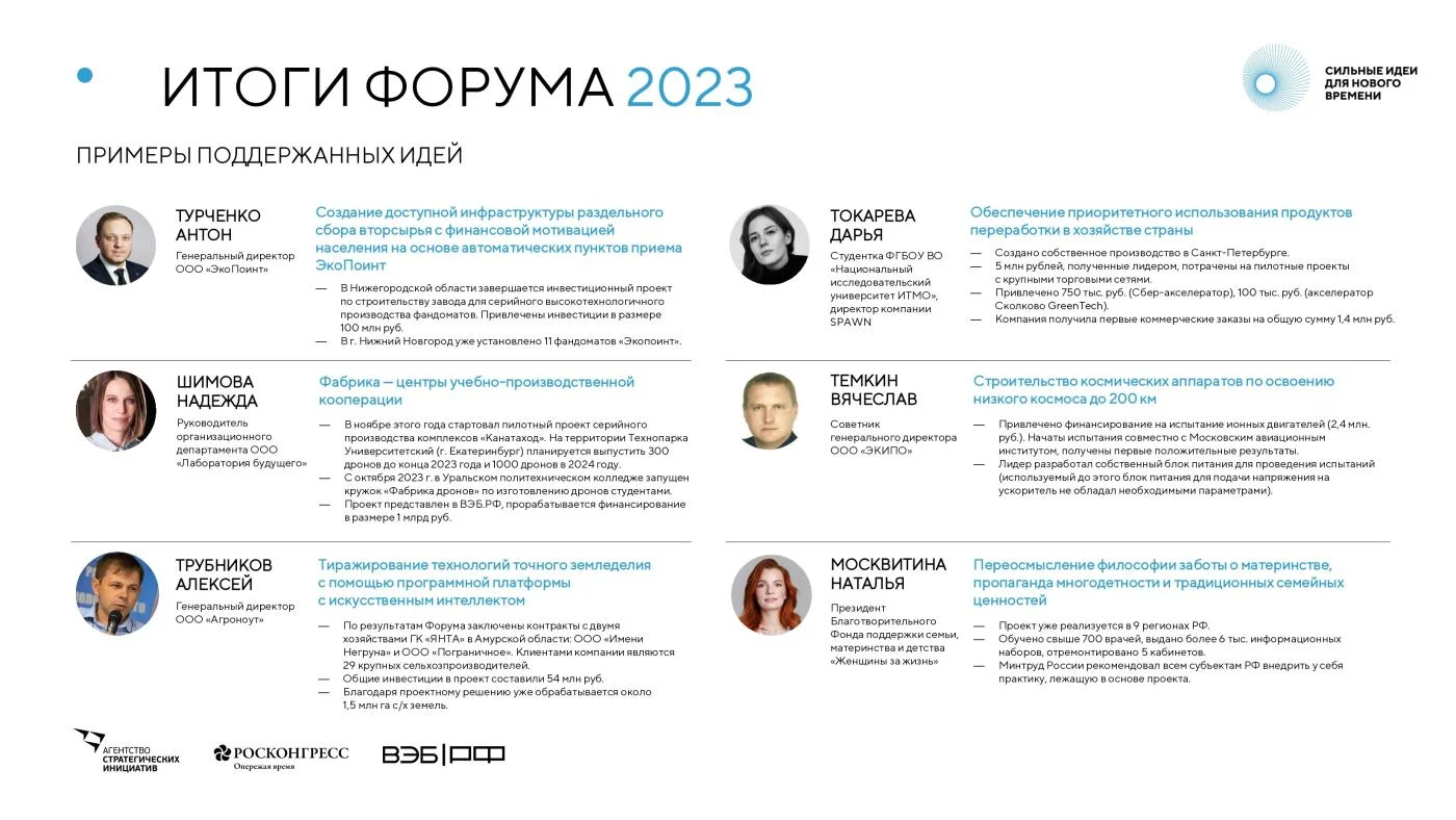 Форум объединяет лидеров и экспертов в сфере экономики, технологического и социального развития, НКО, образования, городской среды, представителей государства и неравнодушных граждан для совместного проектирования, сбора и широкого обсуждения таких идей и проектов.